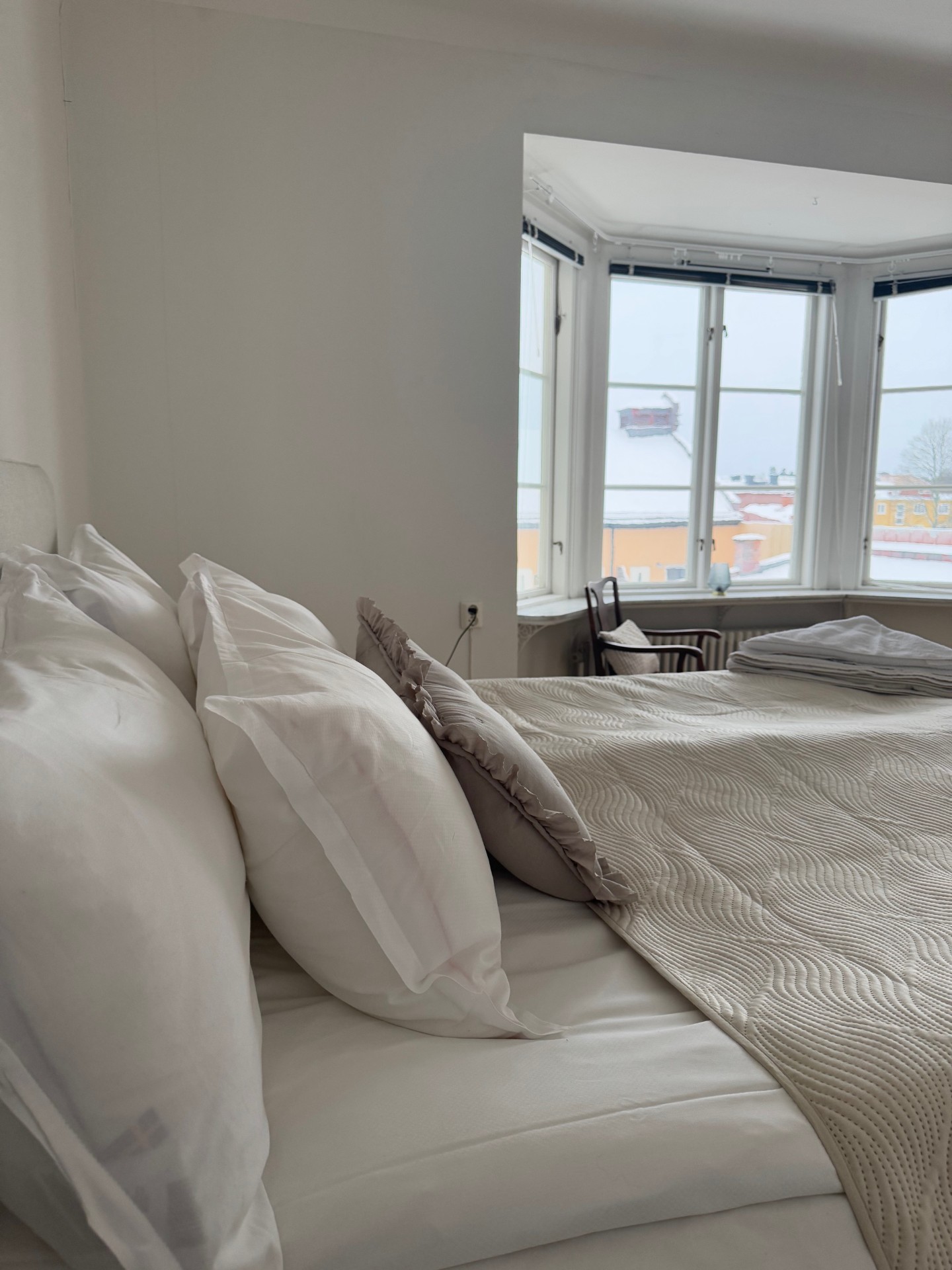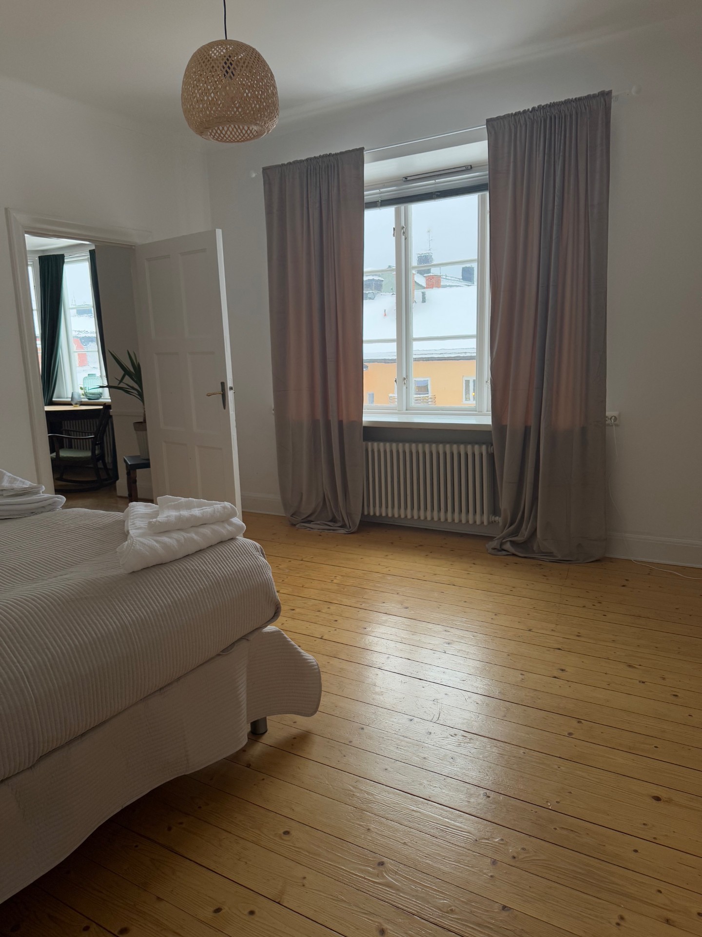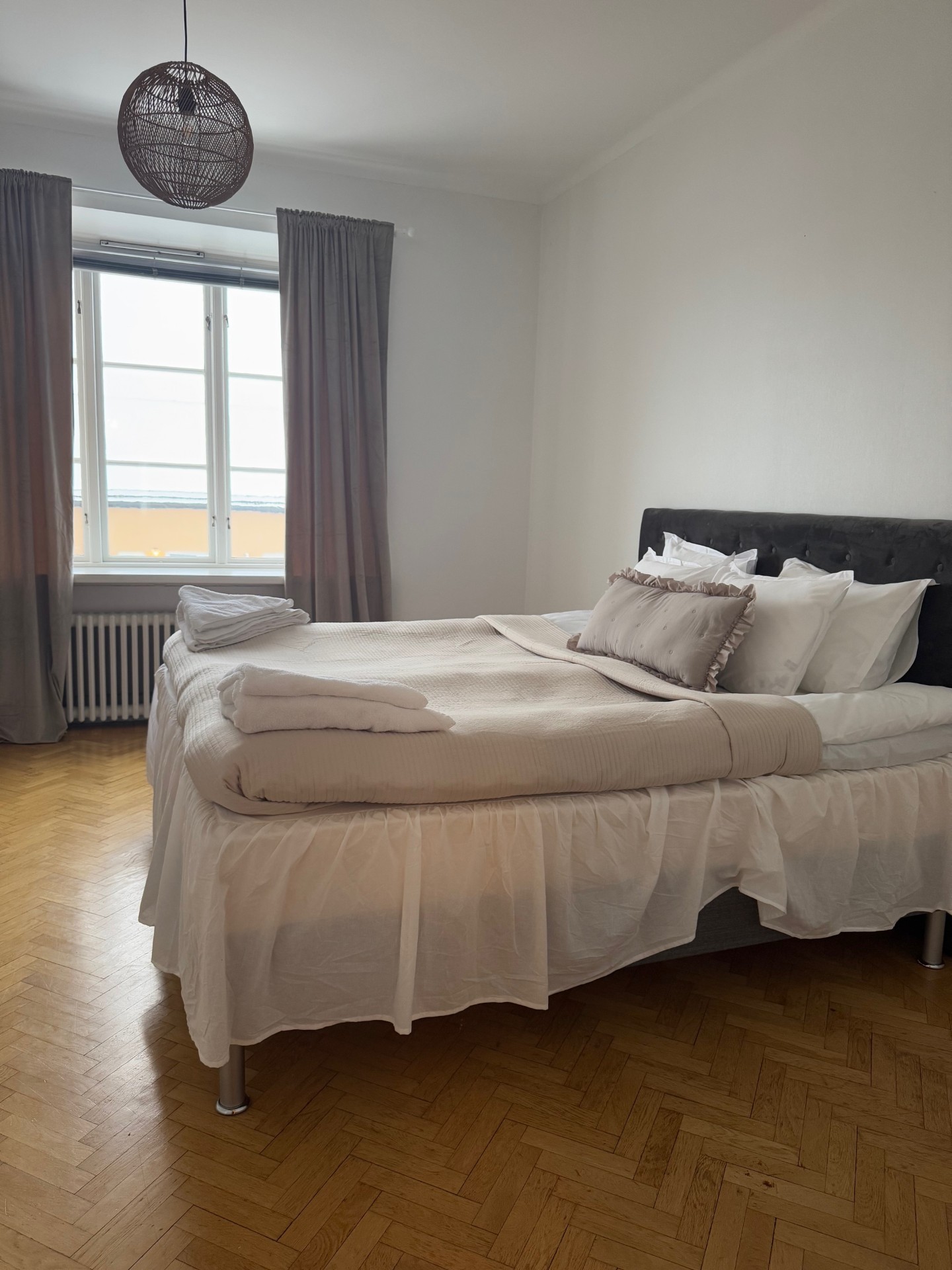 Stadens bästa läge, parkeringsplats, 4 stora kingsize sängar, 1 skön enkel säng och 1 stor bäddsoffa. Smart Tv med stort kanalutbud och en stor och bekväm soffa med plats till boendets alla gäster, finns 2 enorma vardagsrum. 1000 Mbit/s Wifi. Fullt utrustat kök och diskmaskin. Ett stort badrum med handukstork, tvättmaskin och torkmaskin, samt 2 praktiska WC. Ingår sängkläder och lägenhet städ
